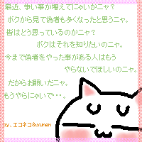 ![]() ニャンコさん(2004/10/2) 愛知県 小学6年生 |